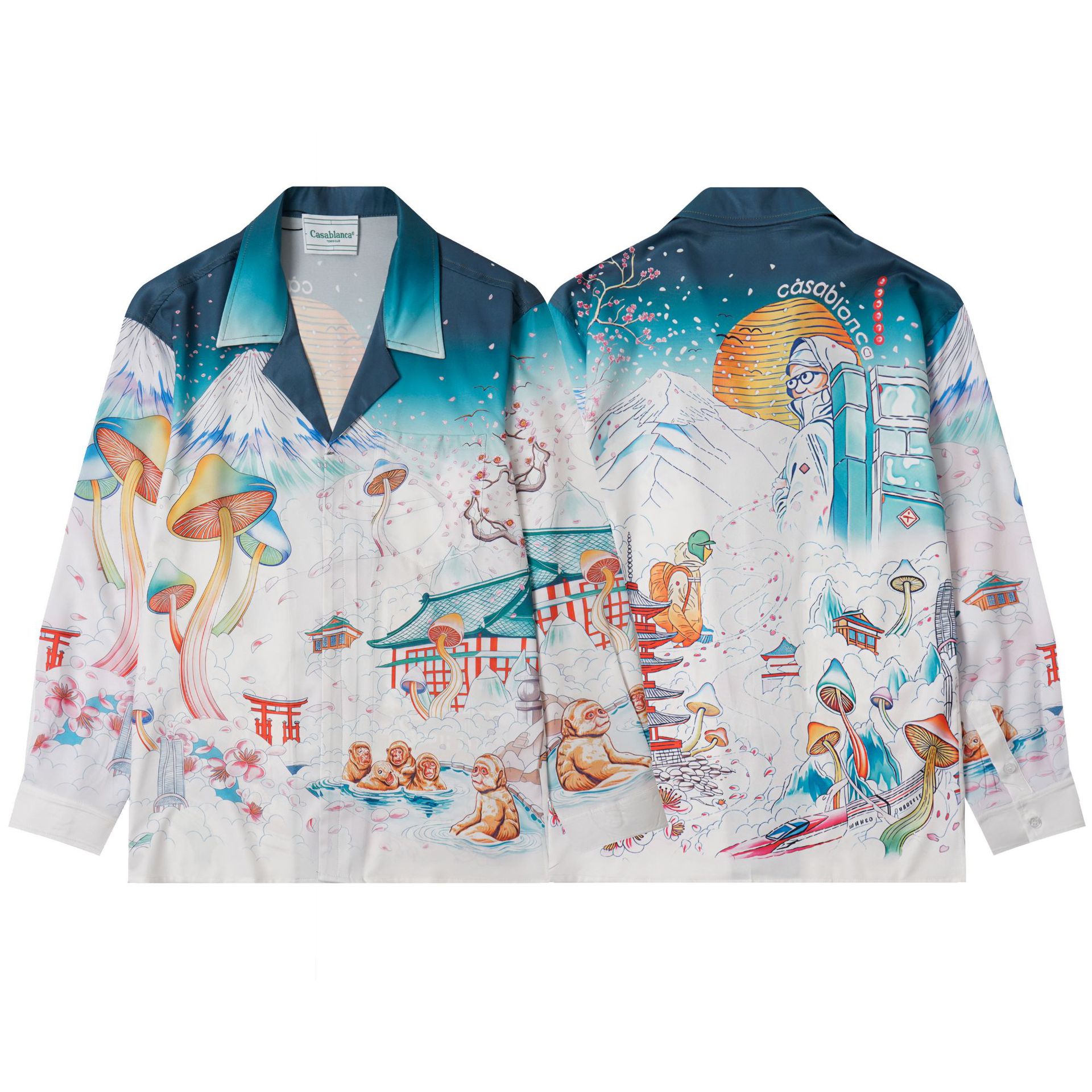 2026跨境批发男士印花卡萨布兰卡夏季薄款衬衫CASA高街沙滩衬衫T