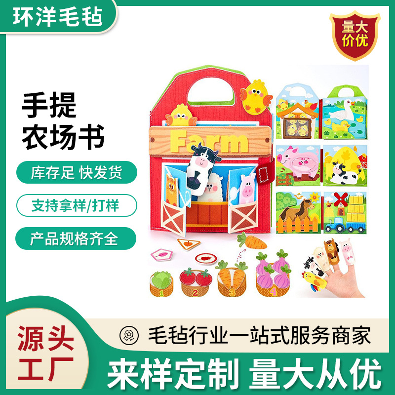 厂家儿童撕不烂布书农场动物毛毡忙碌书安静书益智启蒙玩具立体书