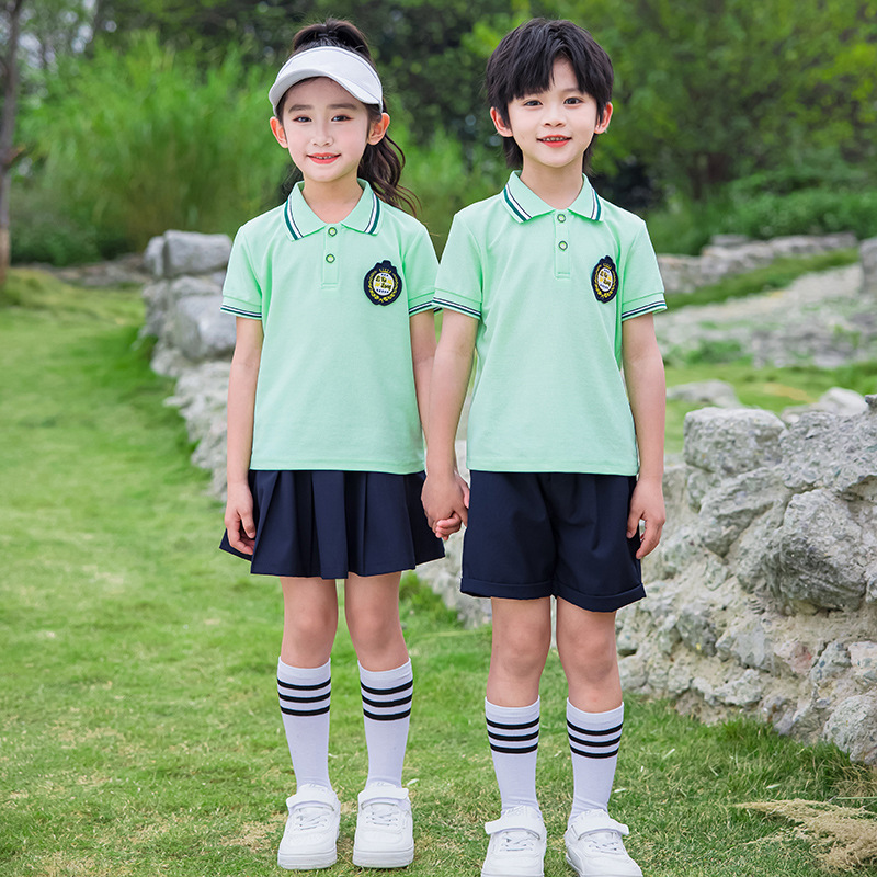 幼儿园园服夏季新款短袖学院风polo衫套装中小学生校服班服老师装