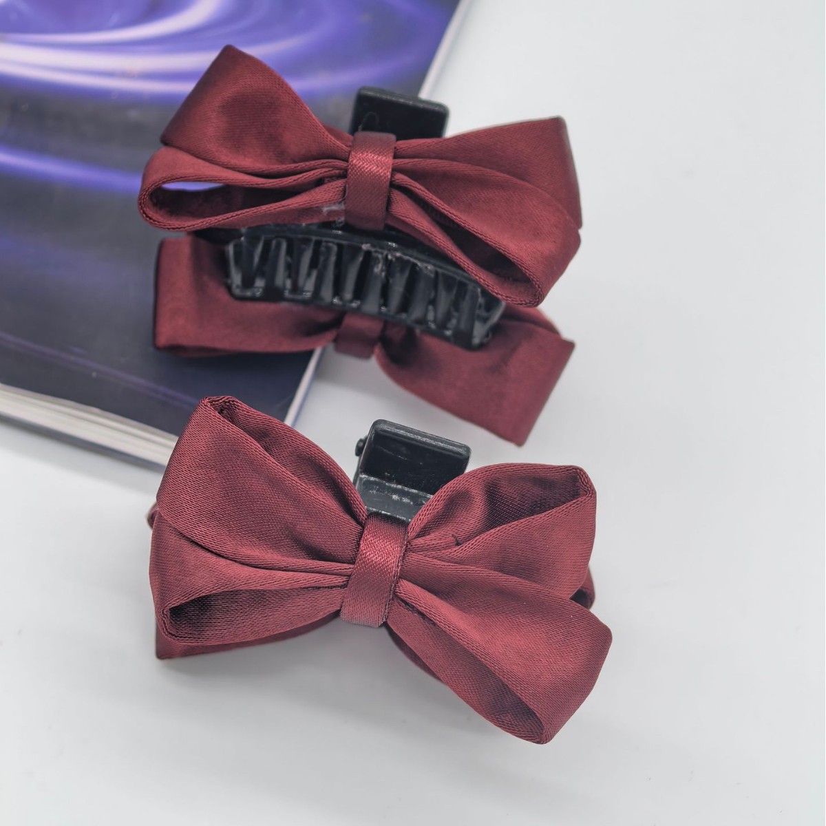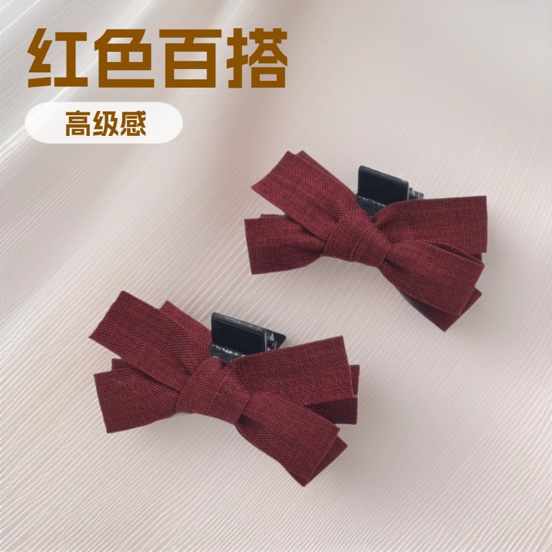 新款复古酒红色布艺蝴蝶结发夹甜美JK风抓夹日常刘海侧边头发装饰