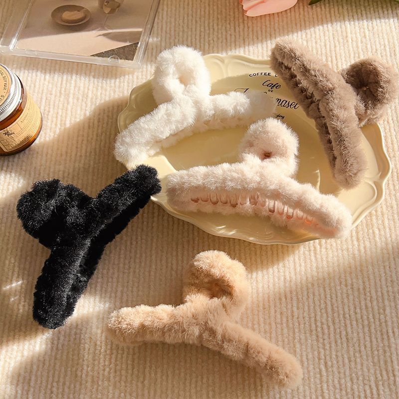 秋冬百搭毛绒抓夹大号毛毛绒发夹子盘发鲨鱼夹女发抓头饰发饰轻奢