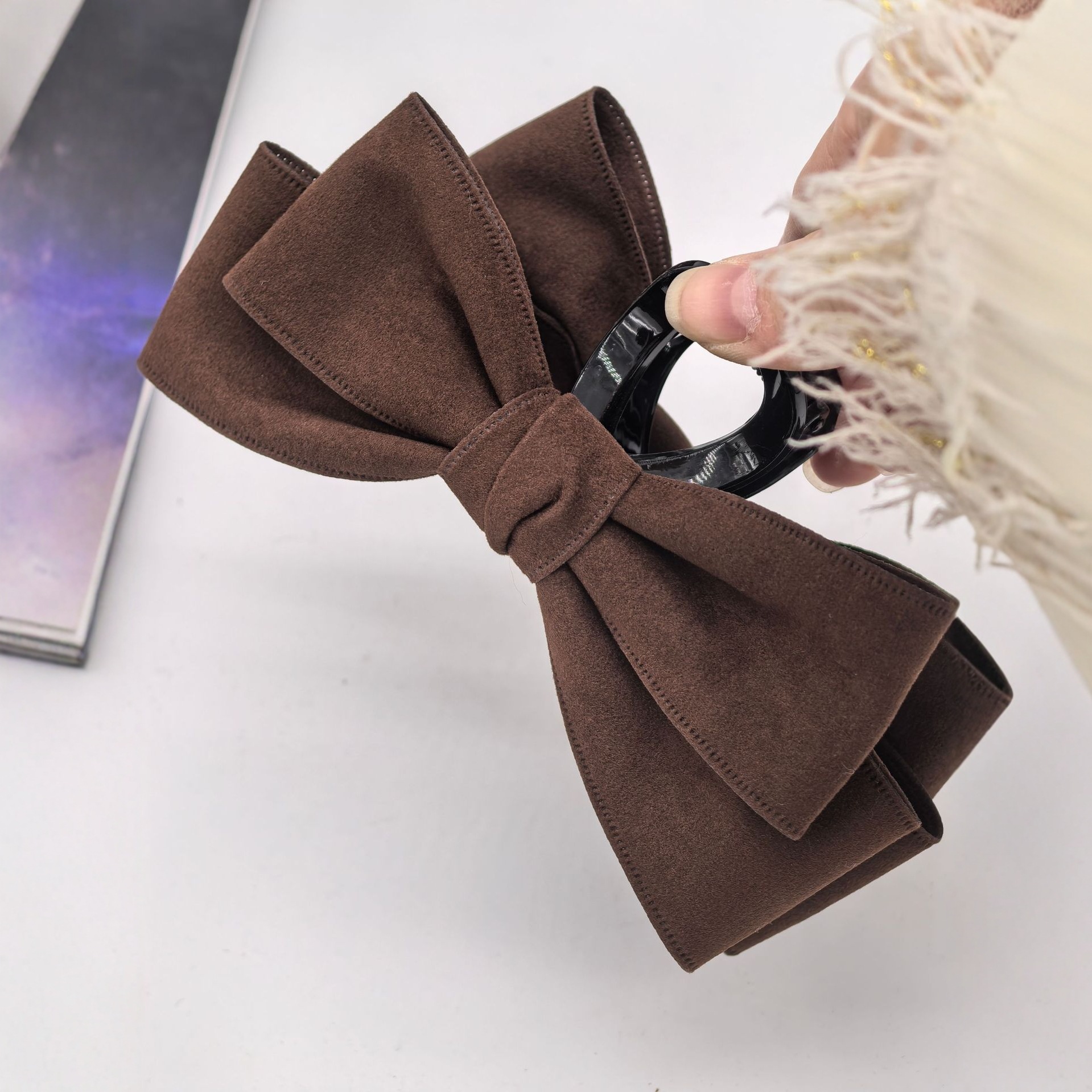 秋冬复古毛呢料蝴蝶结抓夹韩式小众气质优雅后脑勺大号鲨鱼夹发饰