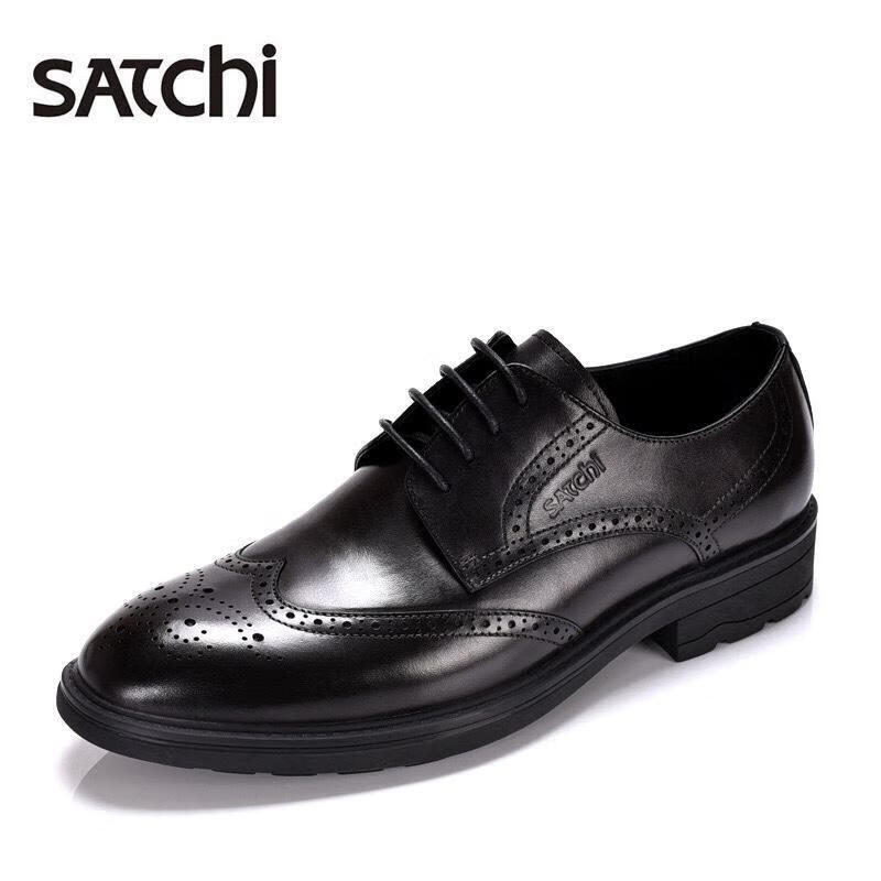 沙驰男鞋春秋新款时尚布洛克鞋雕花系带真皮正装皮鞋宴会气质商务