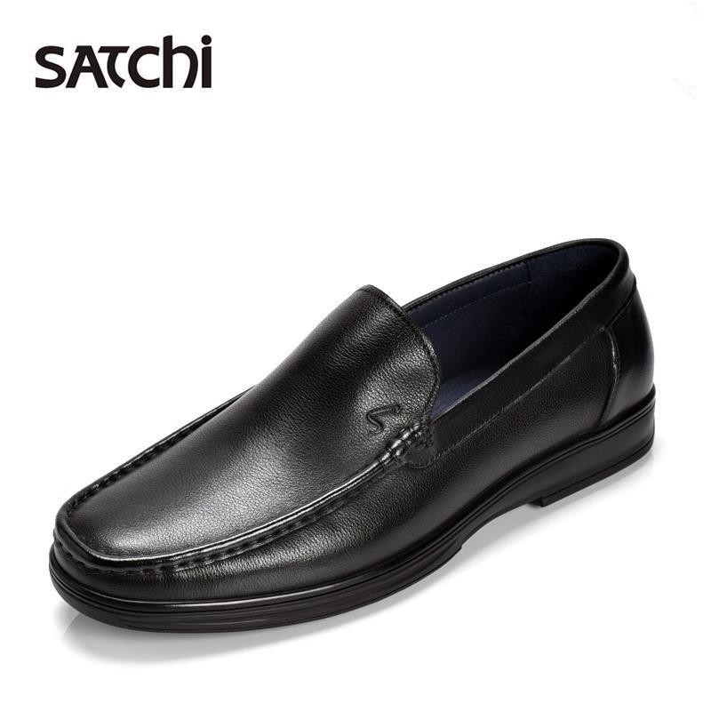 沙驰男鞋秋季新款高档真皮皮鞋透气休闲乐福鞋商务套脚软皮软底鞋