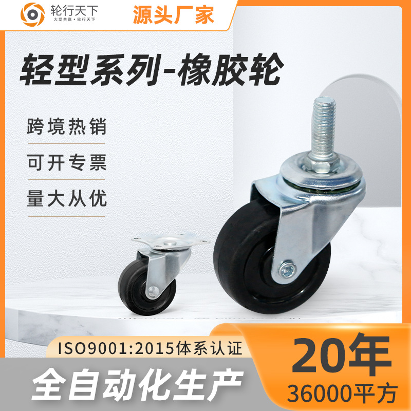 1.5寸2寸2.5寸3寸黑色硬橡胶脚轮子万向轮静音耐磨佛山脚轮厂