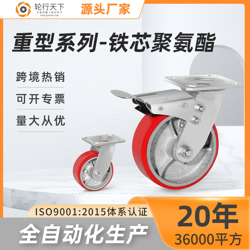 4寸5寸6寸8寸重型铁芯聚氨酯pu轮推车万向轮工业脚轮厂家