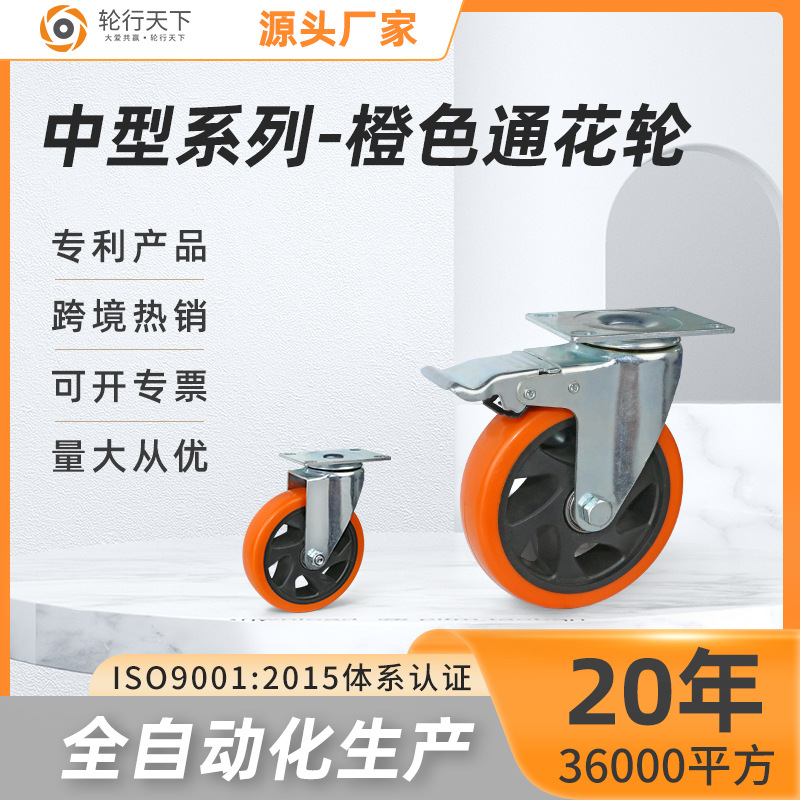 2.5寸3寸4寸5寸中型通花轮橙色PVC脚轮手推车脚轮万向轮批发