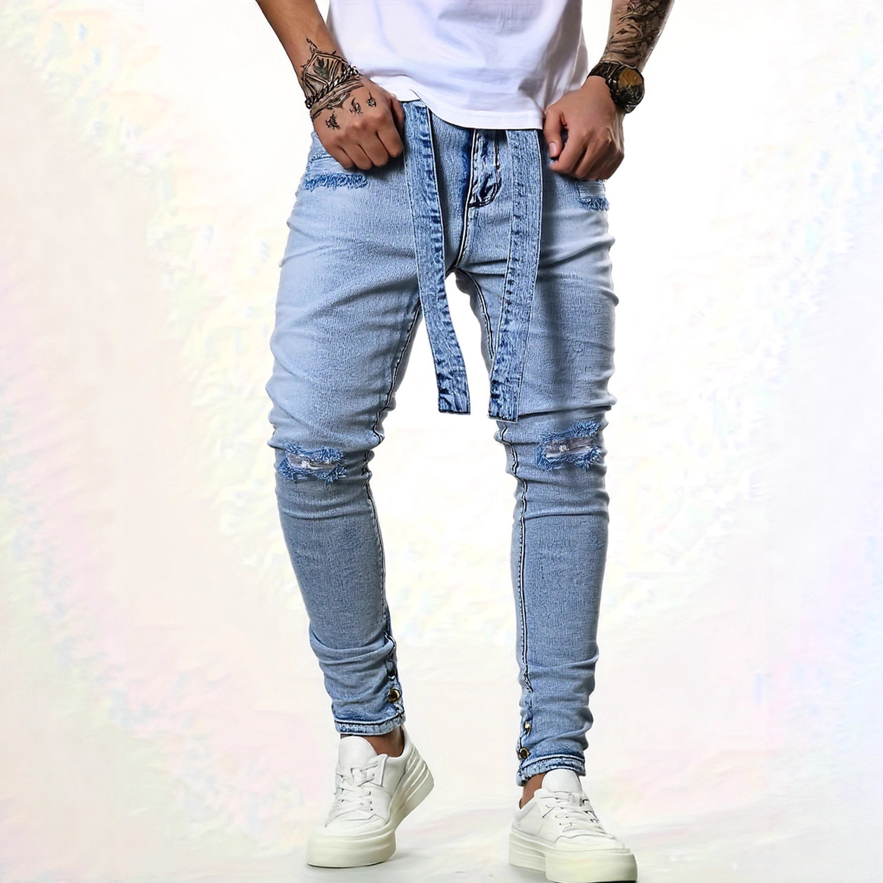 2025欧美时尚ins爆款男士牛仔收脚小脚裤弹力贴布牛仔外贸长裤男