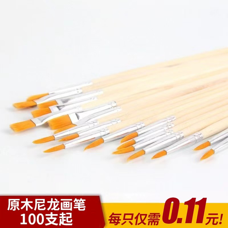 原木杆画笔画刷初学者儿童美术绘画工具水彩笔丙烯颜料勾线笔排笔