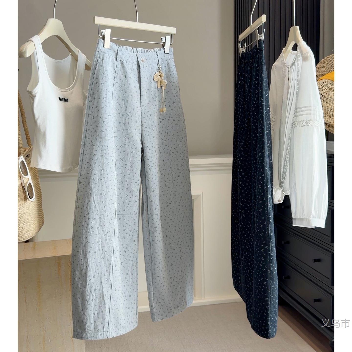 2026春季新款韩系碎花阔腿休闲裤女后松紧高腰宽松显瘦百2026雅晴