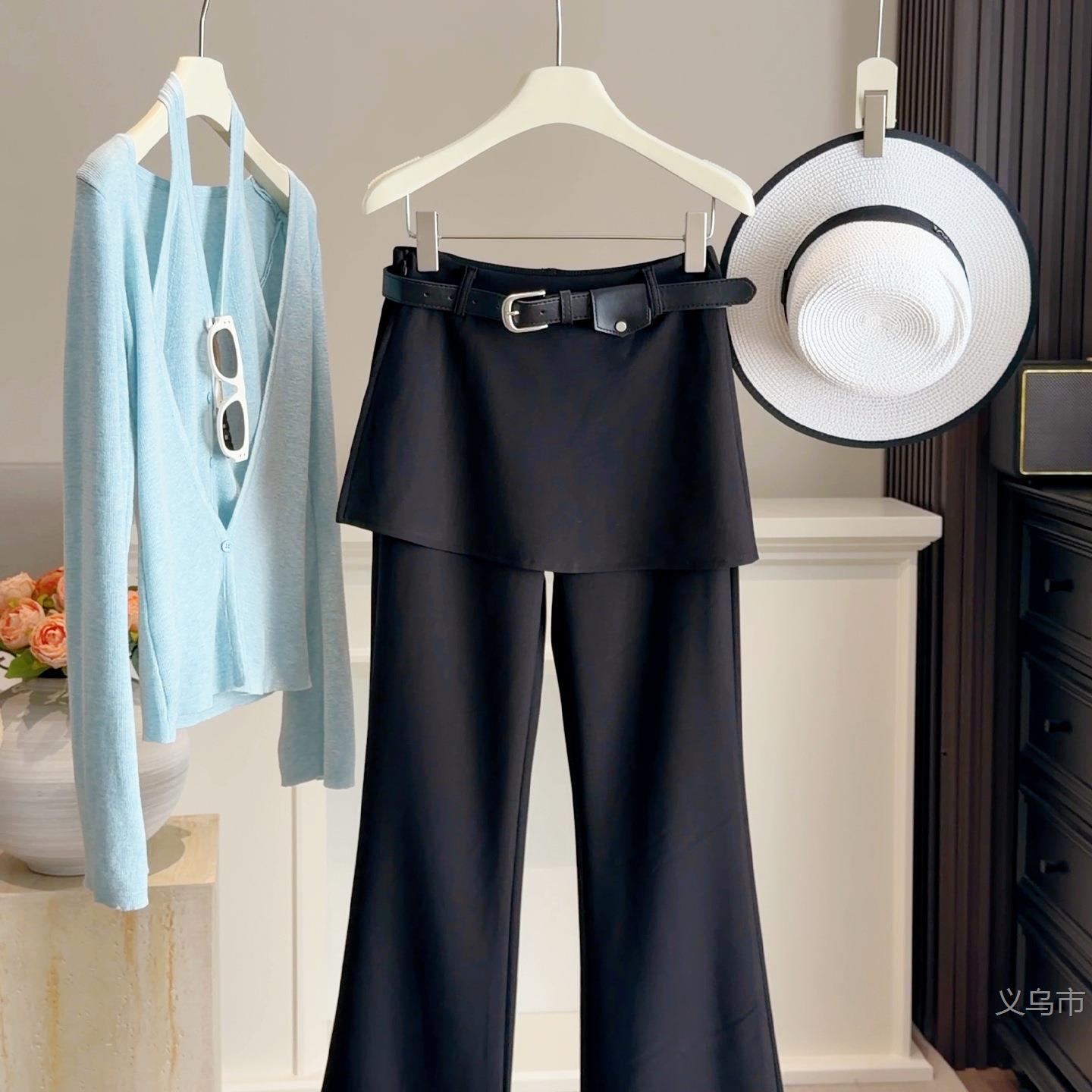 高腰弹力假两件屁帘休闲西装微喇裤女春新款垂坠显瘦百搭2026雅晴