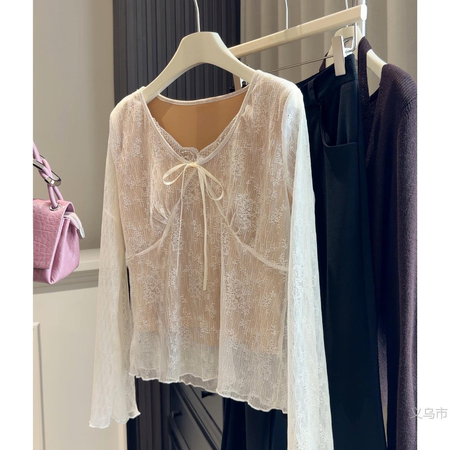 纯欲短款蕾丝衫女2026春季新款辣妹性感打底内搭气质长袖修身上衣