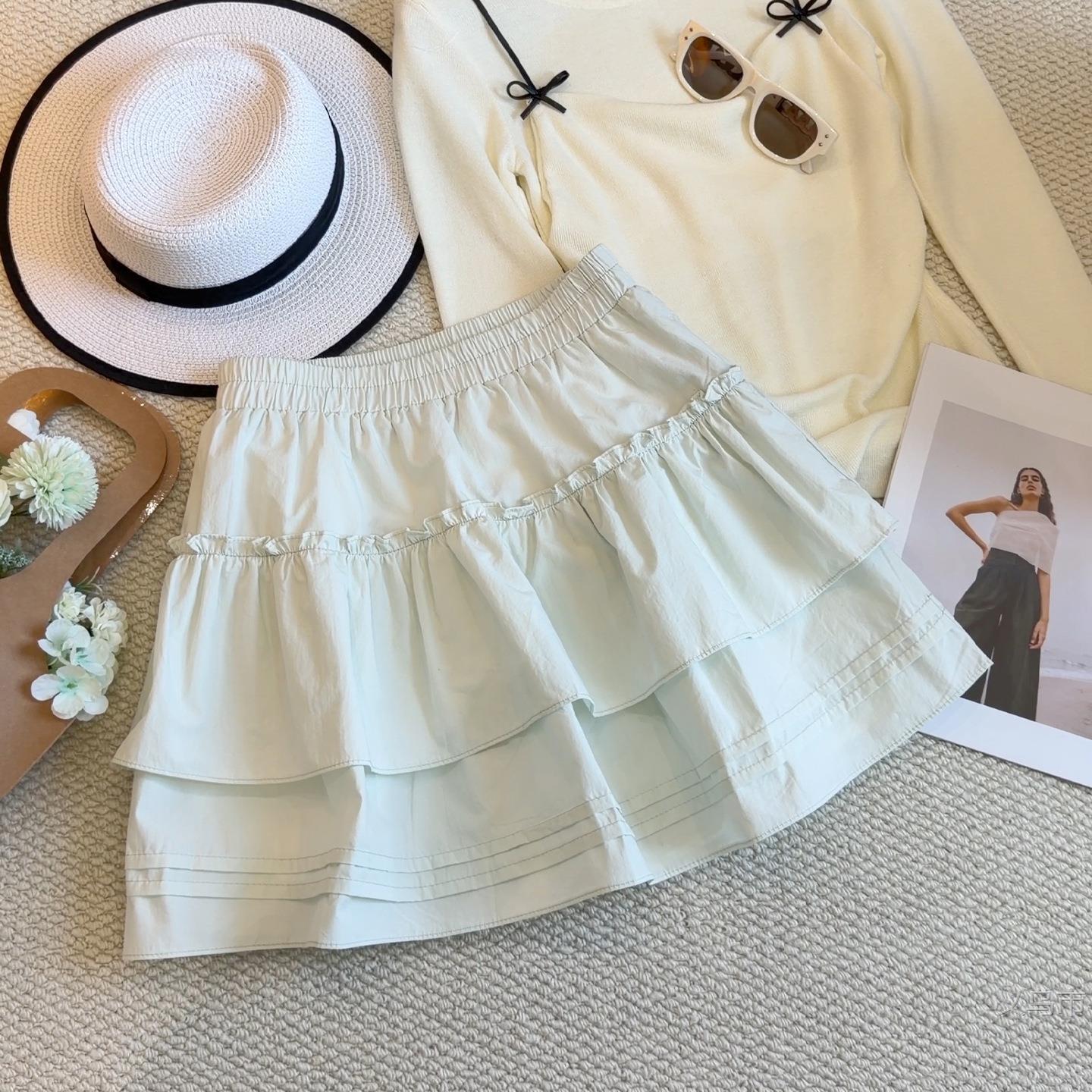 甜美荷叶边蓬蓬蛋糕半身裙女夏季新款高腰显瘦a字裙防走2026雅晴