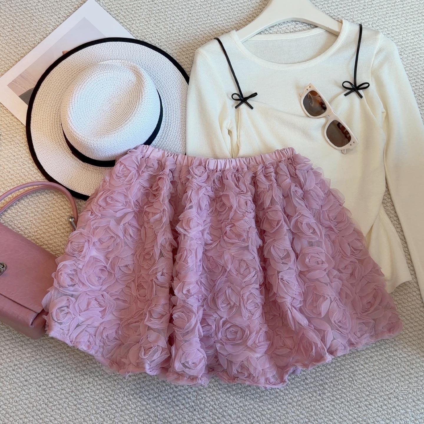 小众气质粉色立体玫瑰花蓬蓬半身裙女夏新款A字高腰显瘦2026雅晴