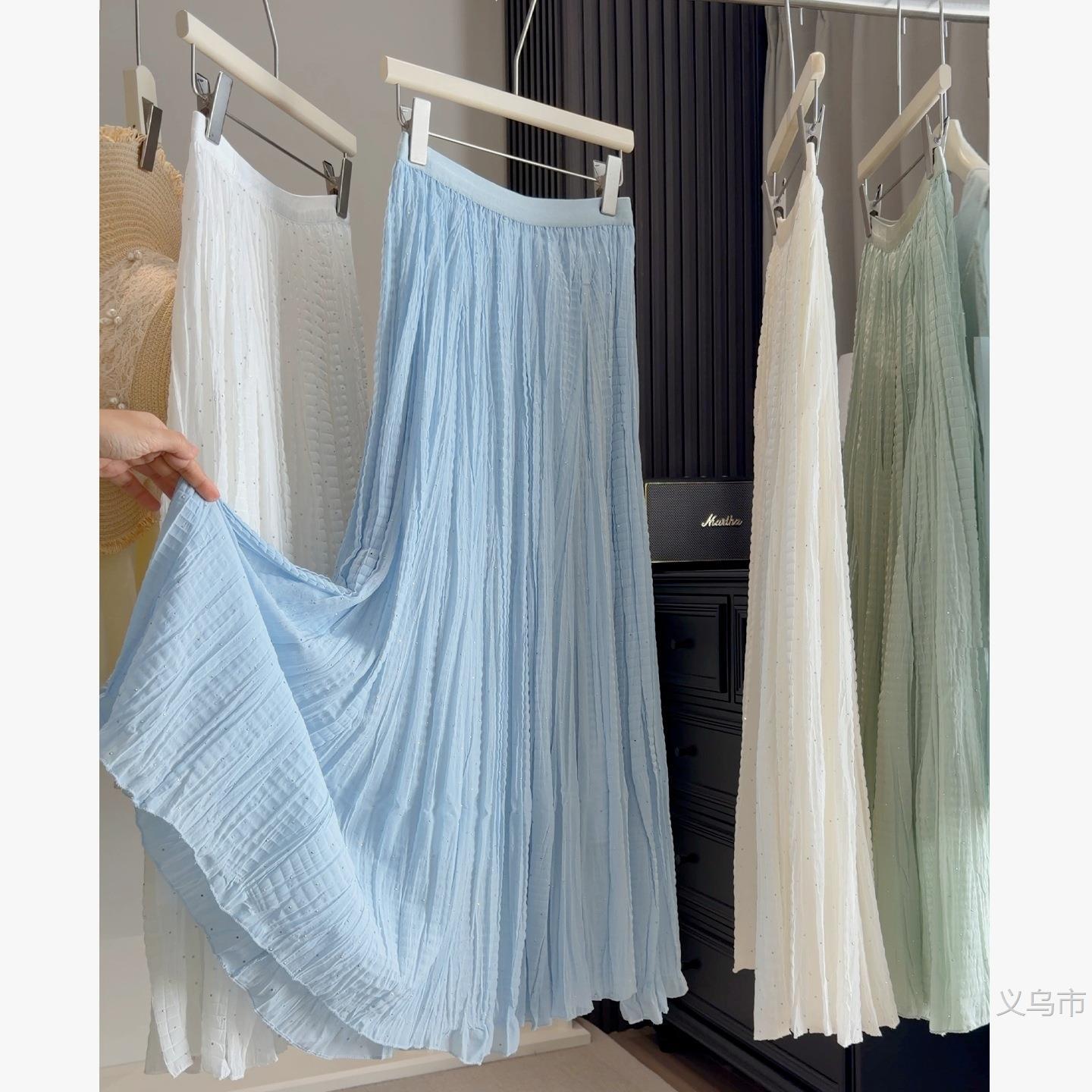 仙气飘飘烫钻百褶雪纺半身裙女2026春季遮肉显瘦A字仙女2026雅晴