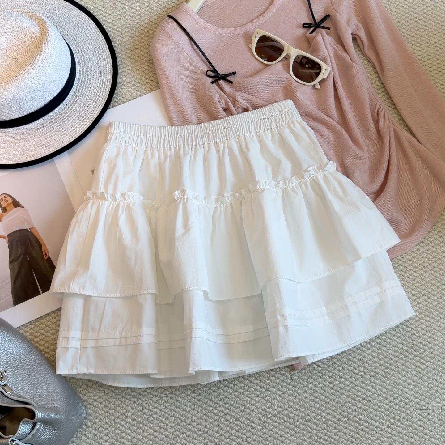 A字高腰蛋糕裙短裙新款白色荷叶边蓬蓬裙时尚显瘦半身裙2026雅晴