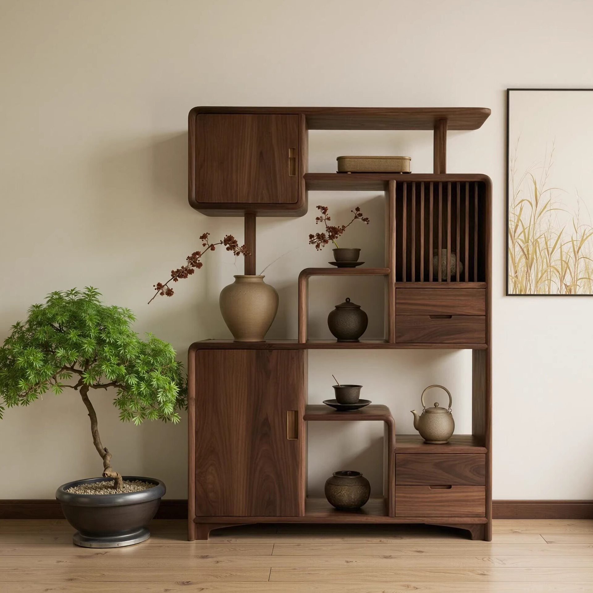 黑胡桃木博古架办公室客厅高级感中古风装饰置物柜茶室