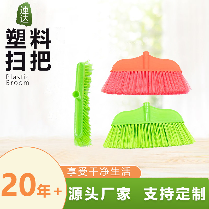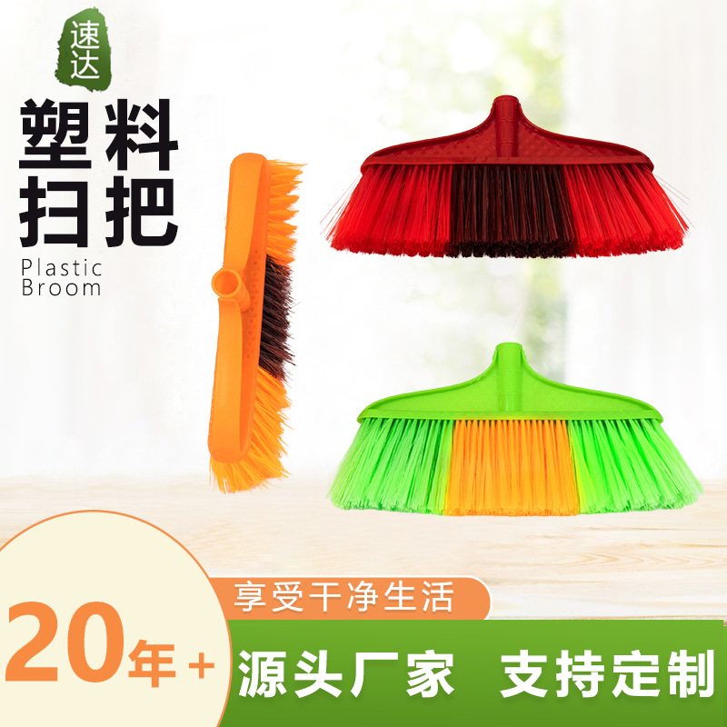硬毛塑料扫把头家用环卫单个木杆塑料扫把工厂扫水学校清洁扫把头