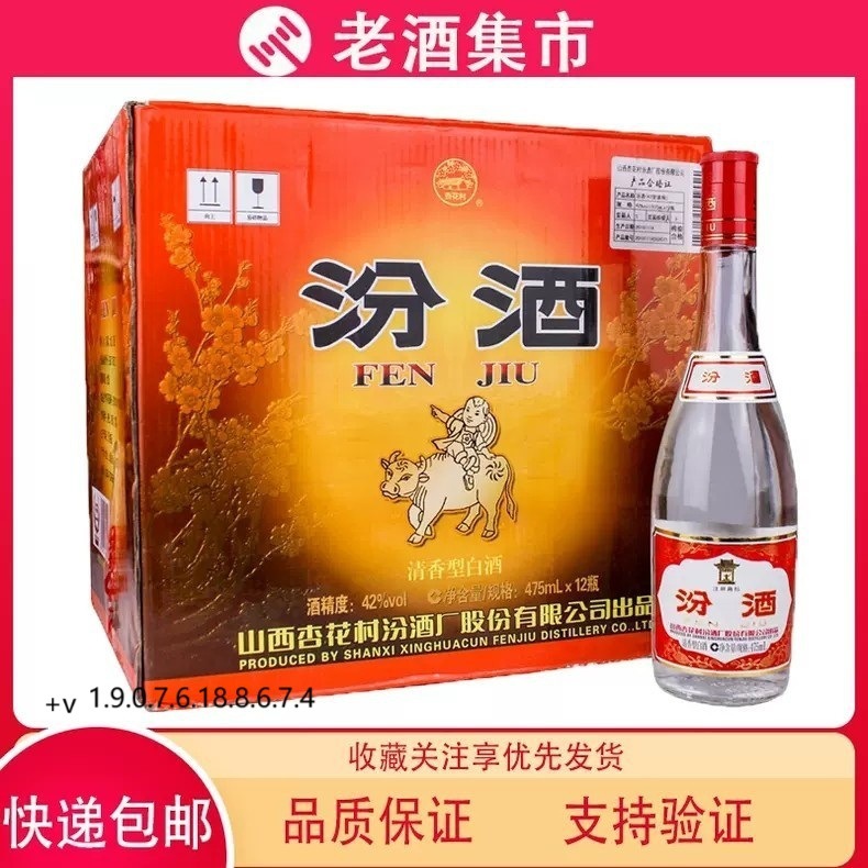 山西杏花村42度红盖玻汾475ml*12瓶纯粮食酒-泡沫箱发货
