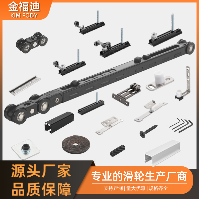 4516极窄铝框门二/三联动吊轮吊轨系统五金全套厨房衣帽室滑门