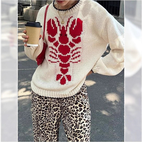 跨境2025冬季毛衣女休闲通勤开衫长袖印花针头套