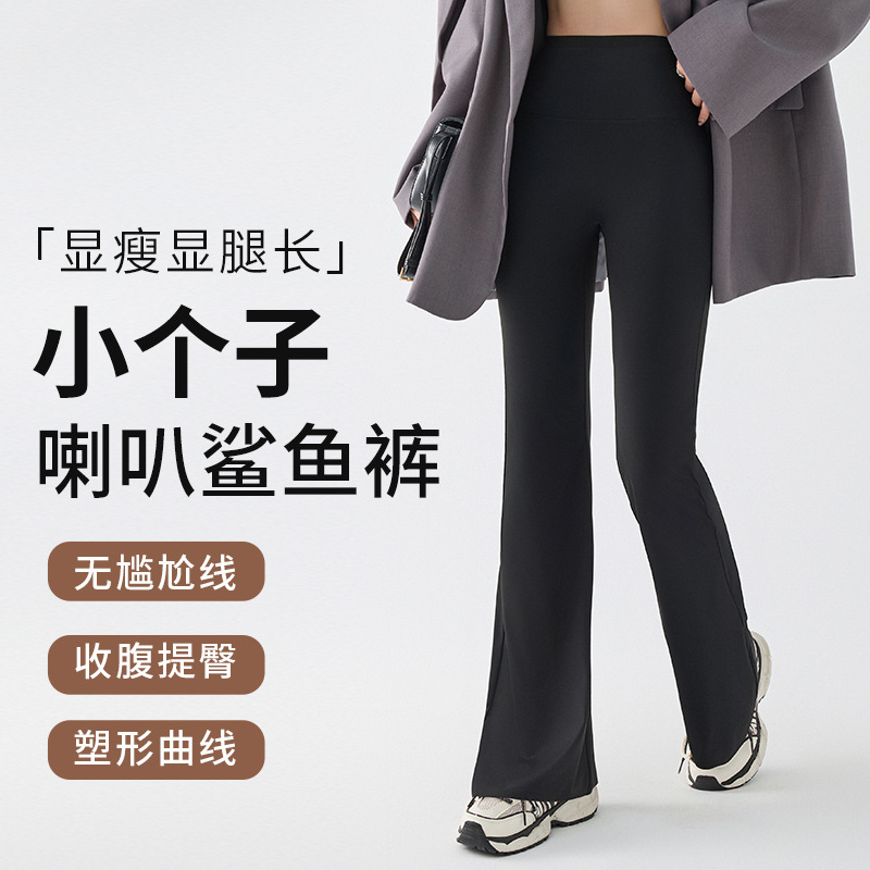 无尴尬线小个子喇叭裤女高腰显瘦黑色微喇裤不贴腿垂感高级感锦纶