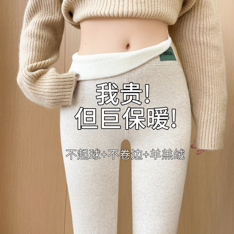 羊羔绒加长保暖裤女外穿秋冬加绒加厚高腰收腹提臀棉裤纯棉打底裤