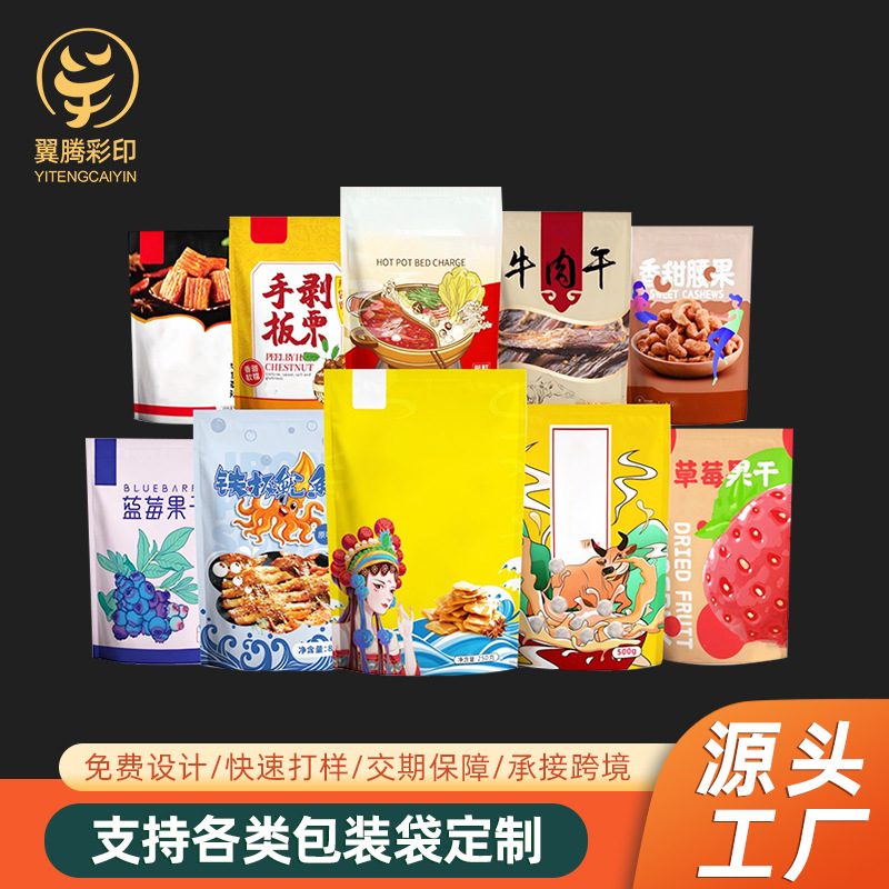 三边封八边封食品包装袋零食塑料铝箔袋自立袋自封袋异型袋定制