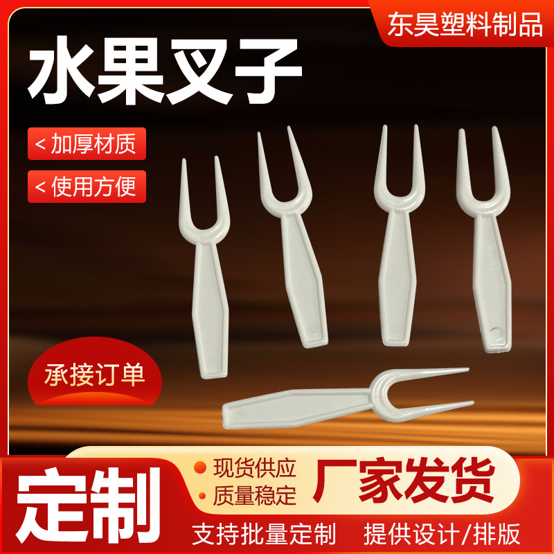水果叉子二齿水果蛋糕点心小叉子一次性塑料水果叉水果签家用定制