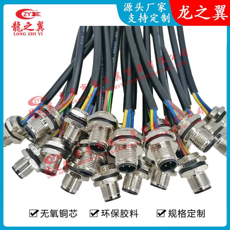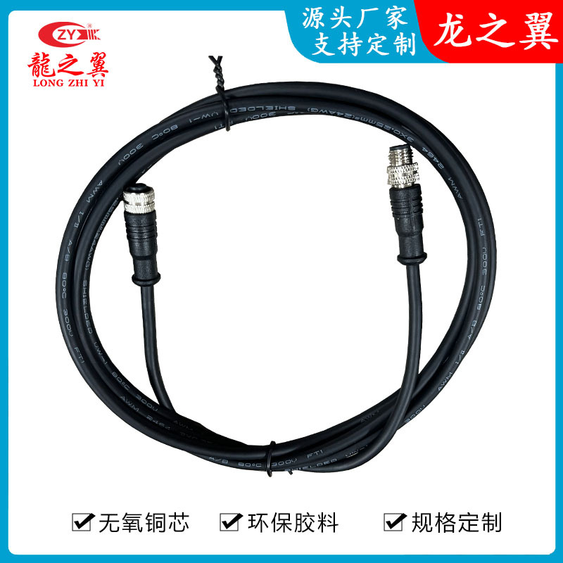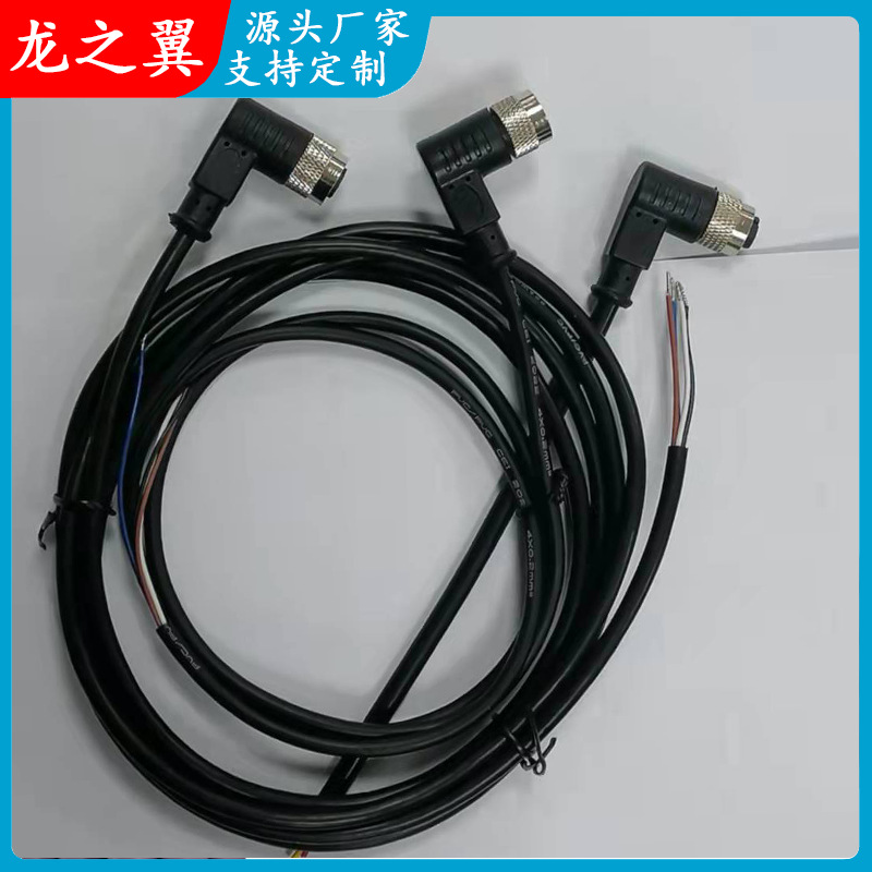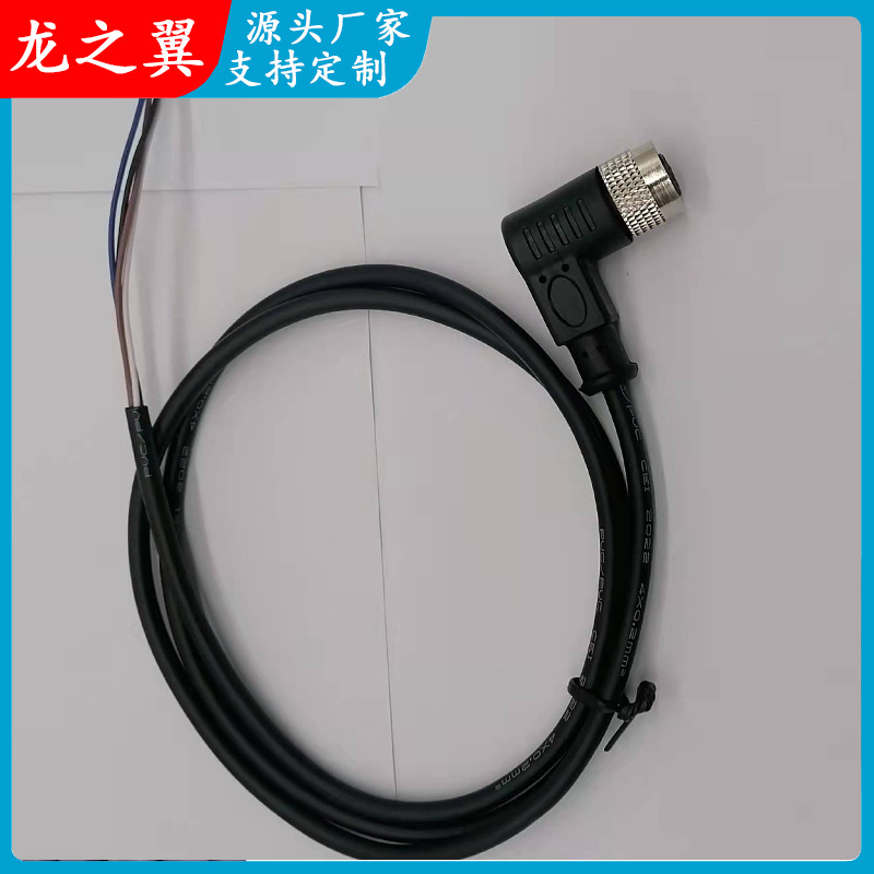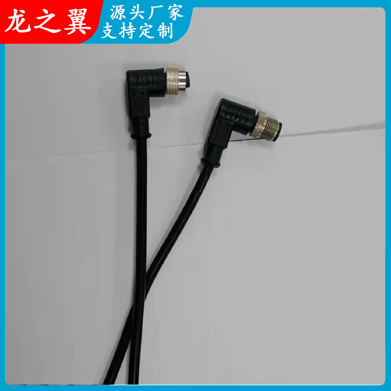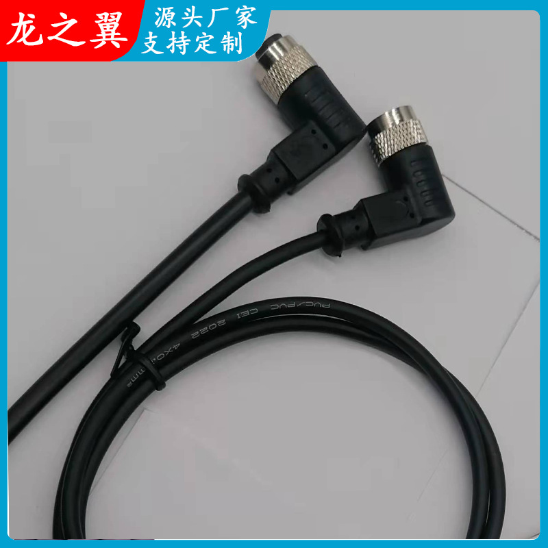 M12 4针4孔防水连接器传感器带线3米弯头90度插头龙之翼