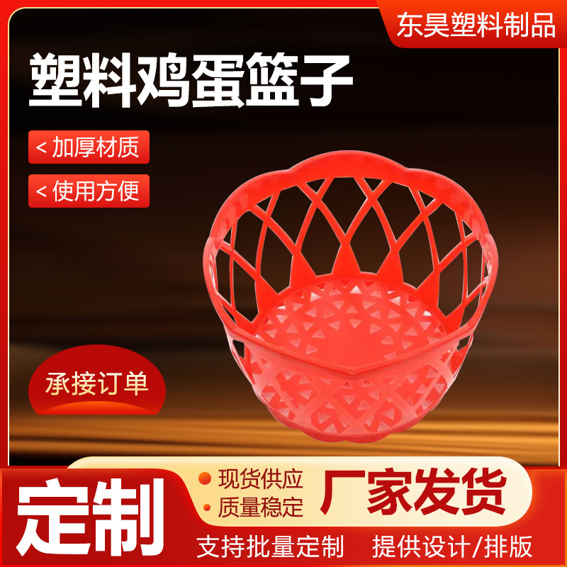 塑料鸡蛋篮子圆形小筐装包装筐编织土鸡蛋手提小篮子水果鸡蛋蓝