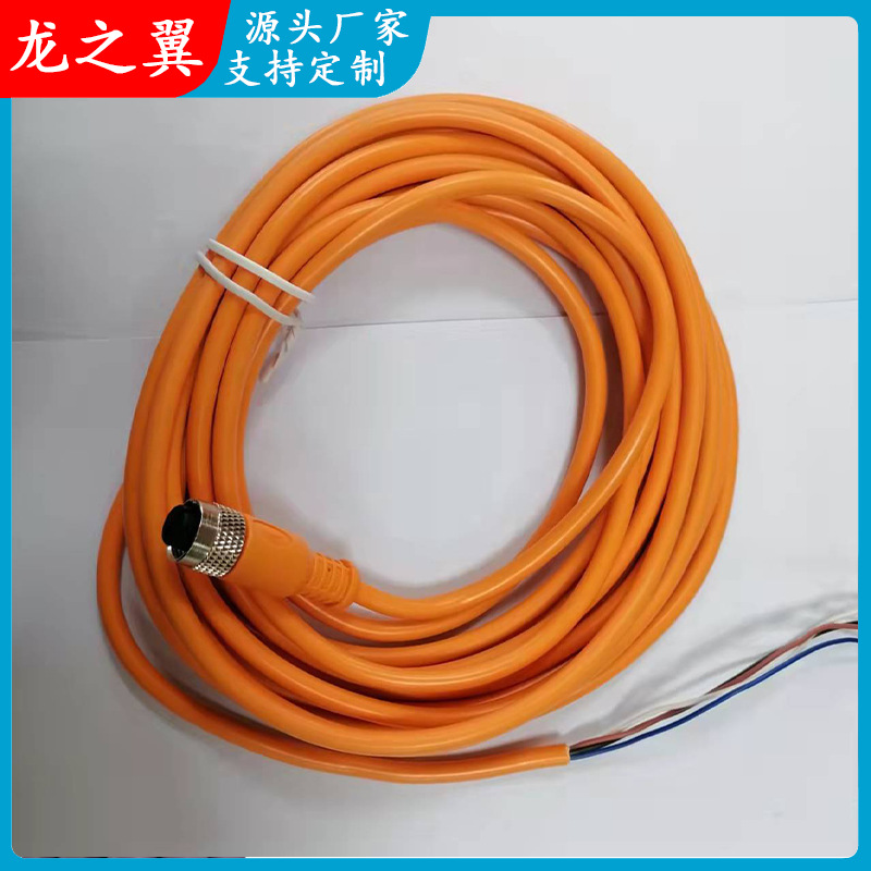 12芯橙色屏蔽耐寒电线M12 12针8孔带线2米防水航空插头传感器仪气