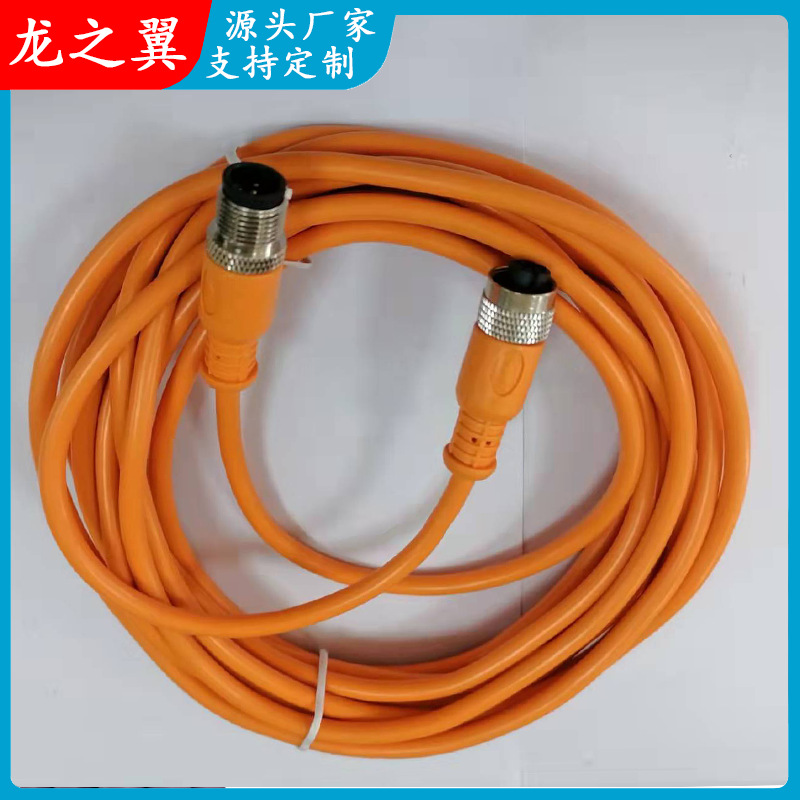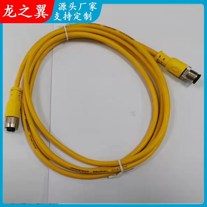 M12电缆4针4孔黄色带线4芯0.34平方传感器航空插头防水IP67连接线