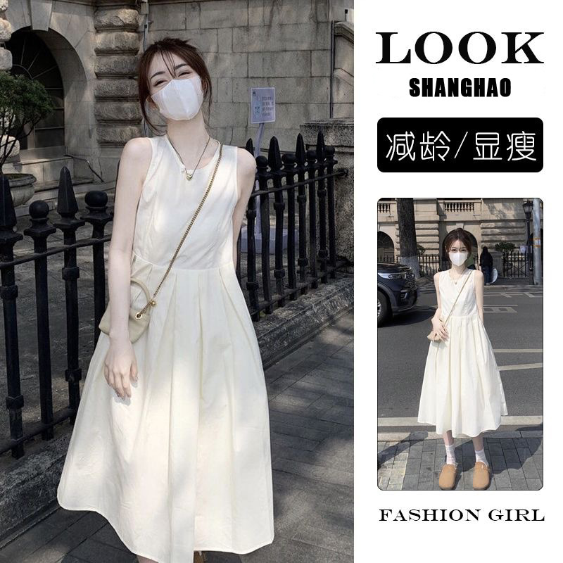 【下拉链】韩系新款女装茶歇法式白色无袖连衣裙小个子显瘦背心裙