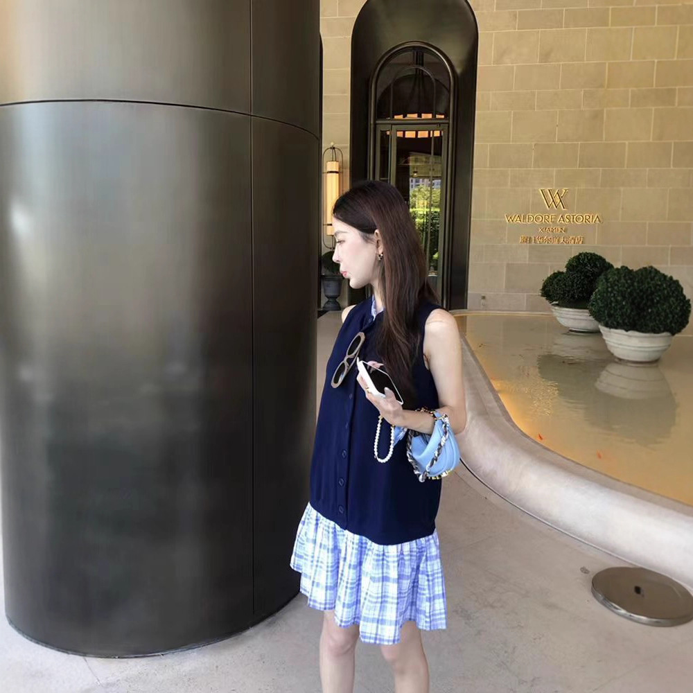【宋妍霏】同款2025年秋季新品撞色拼接无袖连衣裙