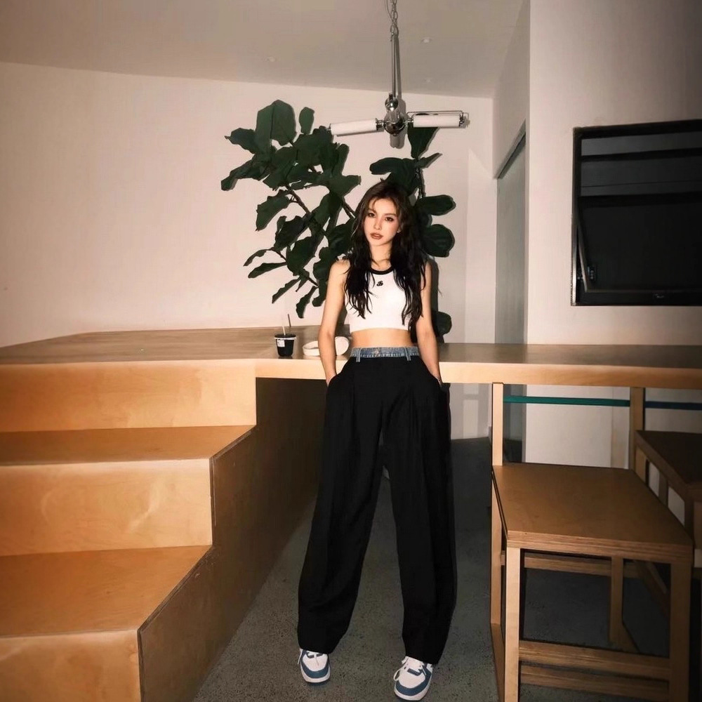 王心凌同款25年新款牛仔头拼接 休闲 百搭 西裤直筒长裤
