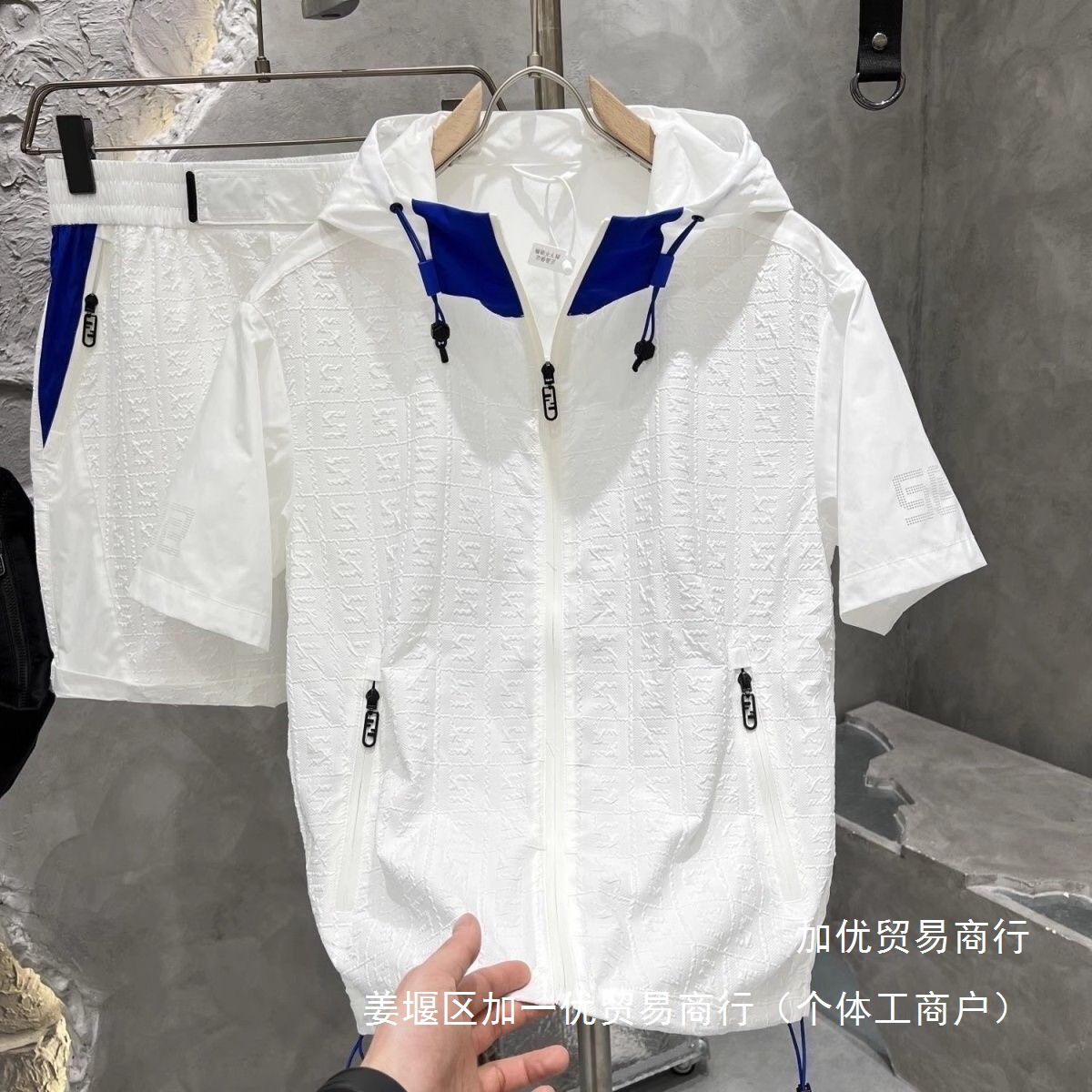 特大码300斤撞色宽松显瘦连帽短袖套装夏胖MM短袖上衣+短裤两批发
