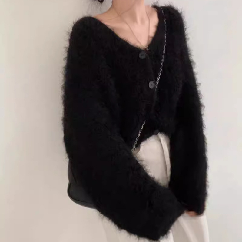 毛茸茸可爱毛衣开衫外套女小个子秋冬保暖长袖上衣宽松百搭针织衫
