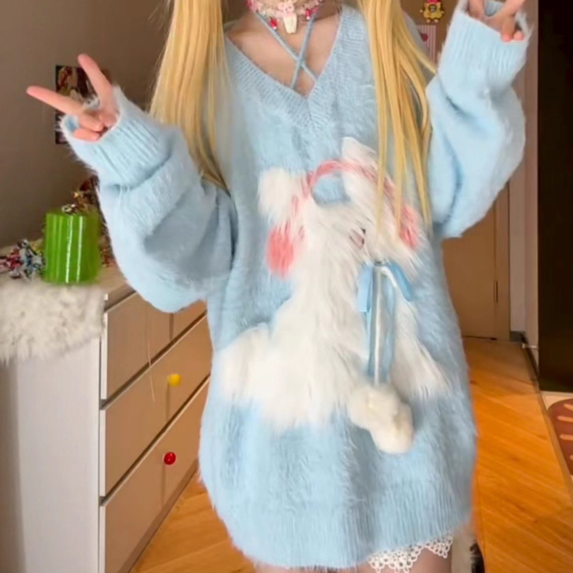 2025秋冬季女装新款吊带仿貂挂脖甜美少女可爱猫咪刺绣针织毛衣女