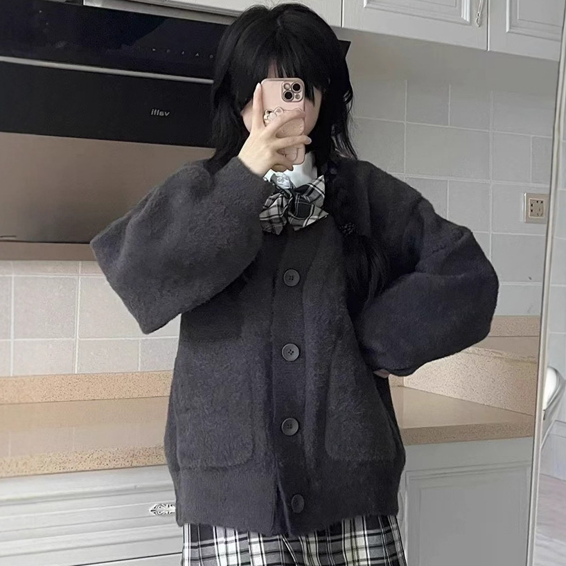 韩系秋冬款款宽松针织开衫女百搭宽松休闲慵懒仿貂绒毛衣外套上衣