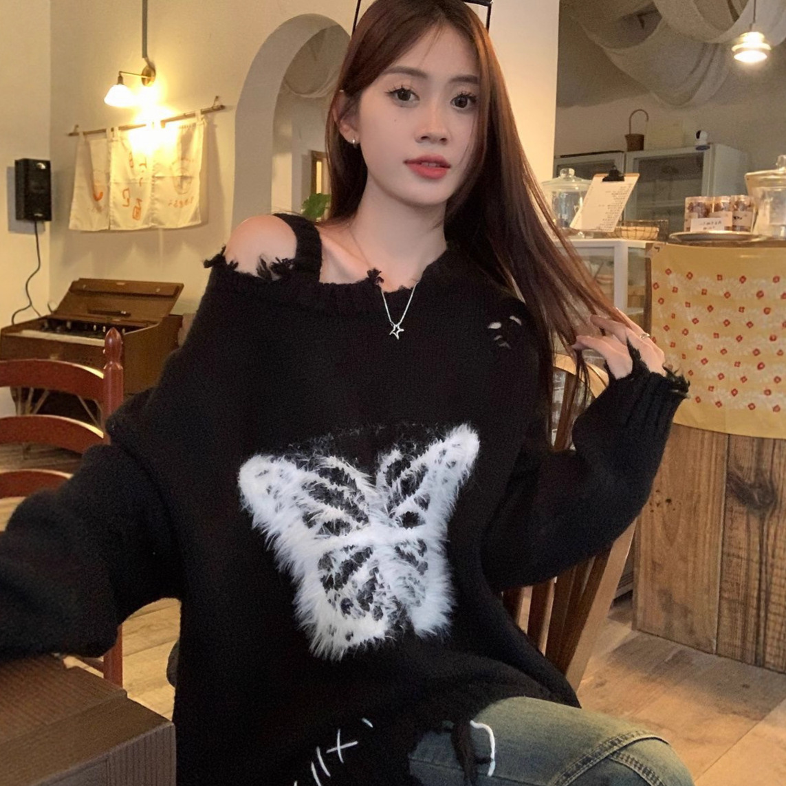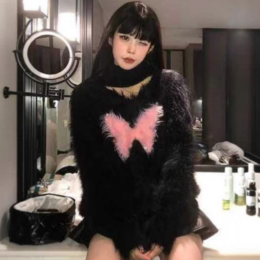 2025秋冬新款 蝴蝶毛衣女秋冬新款慵懒风宽松外穿马海毛针织上衣