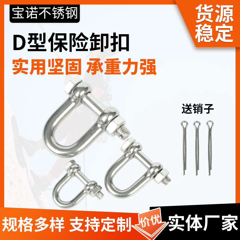 304不锈钢D型保险六角保险卸扣船用起重U形卸扣开口销带螺母卸扣
