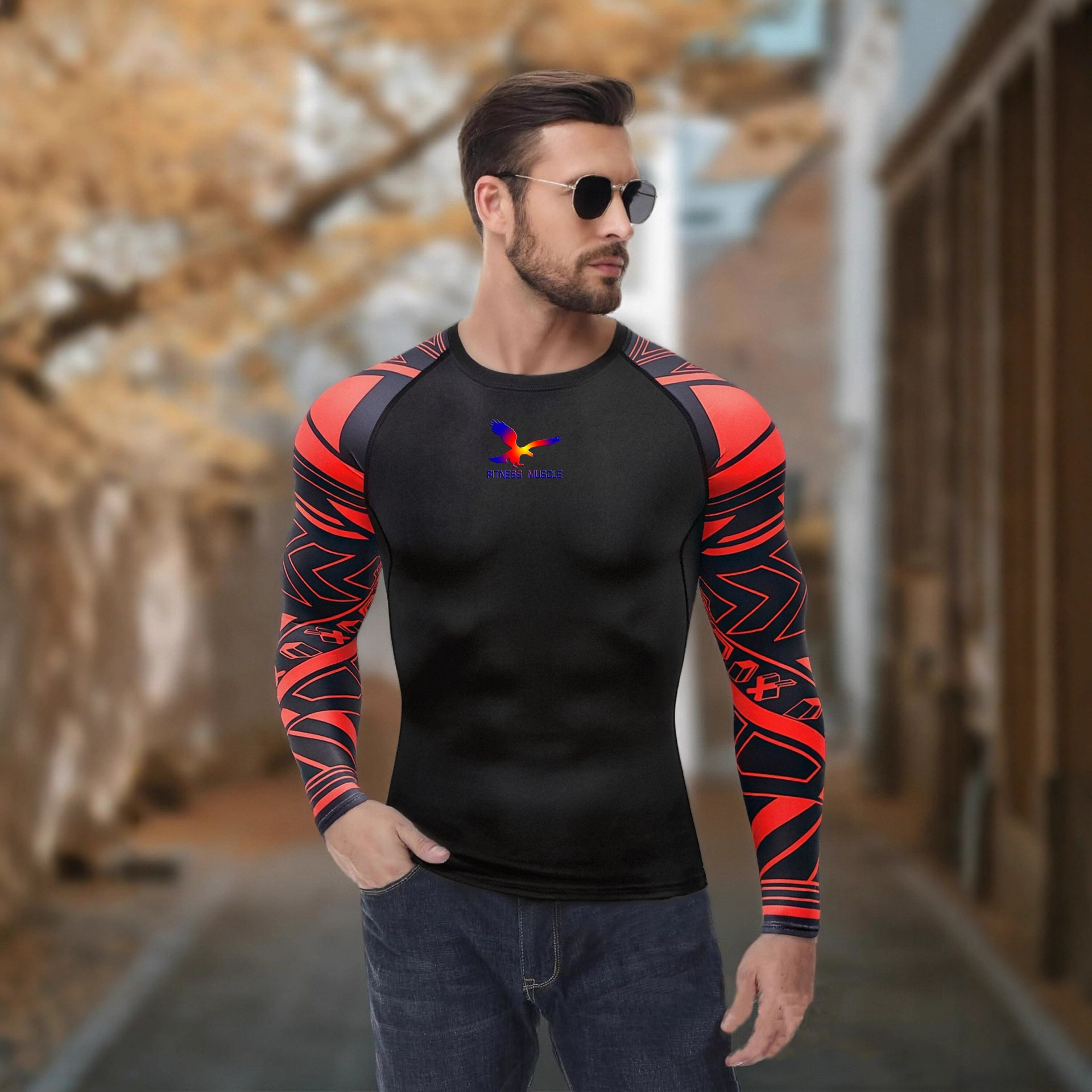 男士拼色印花T恤欧美男运动T恤跨境男跑步健身T恤训练运动长袖T恤
