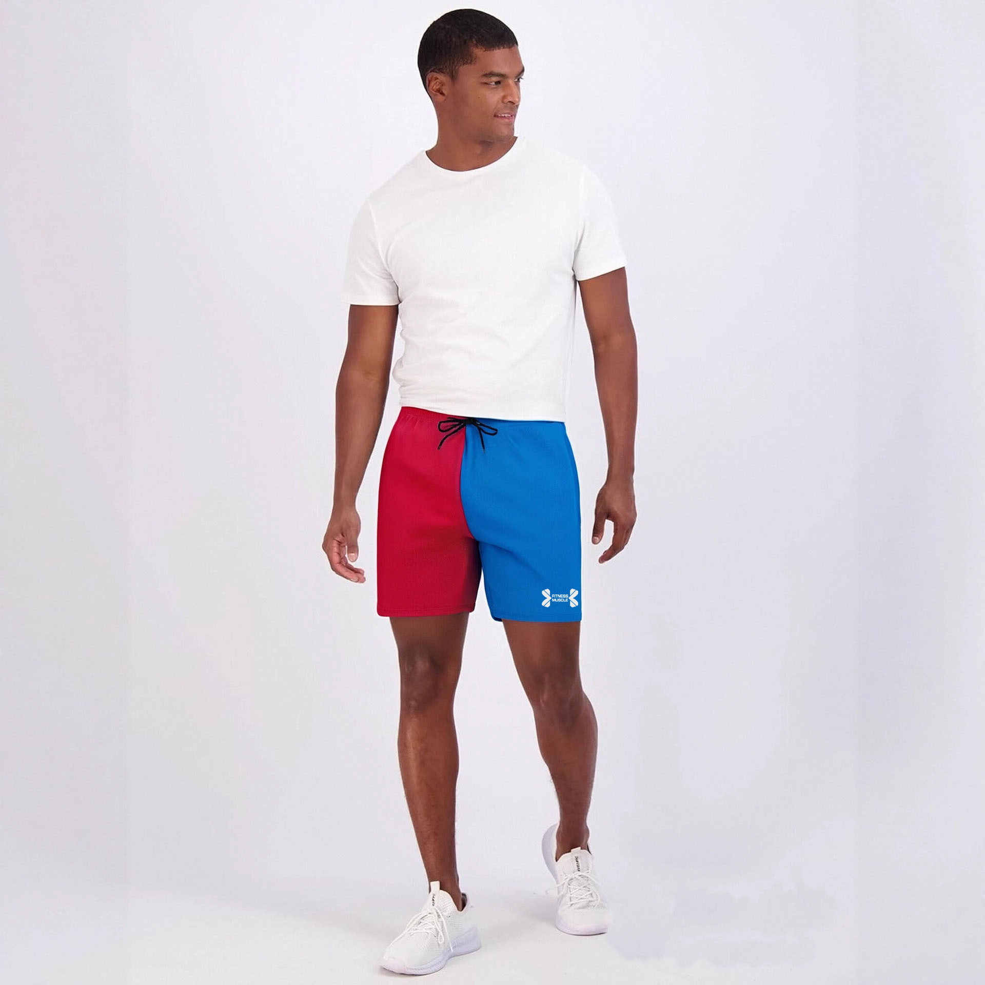 跨境拼色运动休闲短裤男士新款短裤网眼布料印花男式跑步运动短裤