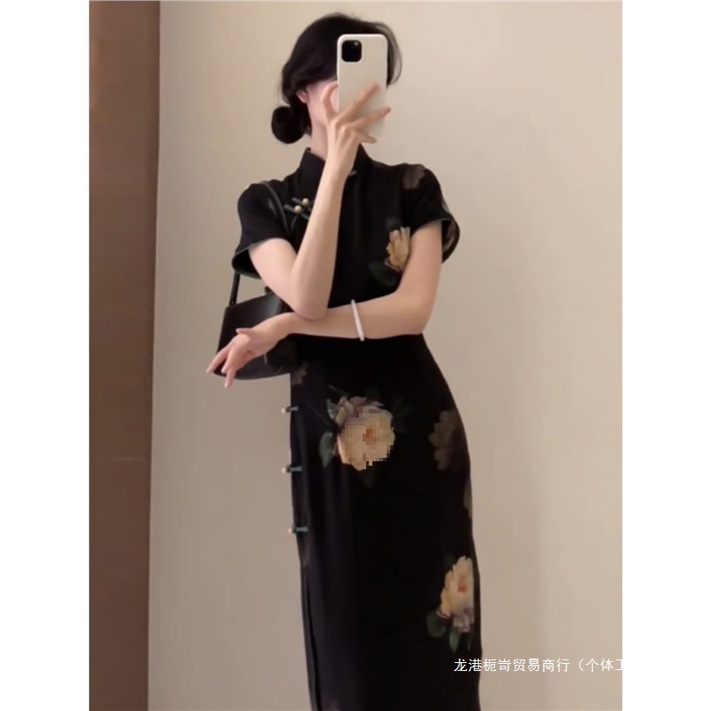 跨境OK-071新中式复古民国风改良显瘦旗袍夏季设计感连衣