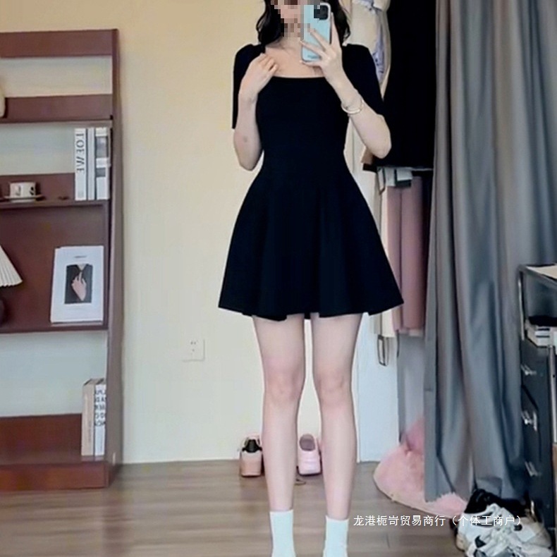 跨境法式赫本风黑色连衣裙2025新款女夏季小黑裙收腰气质短裙子百
