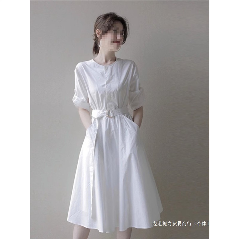 跨境4035欧洲站夏季新款冷淡风女装感气质白色衬衫连衣裙小众