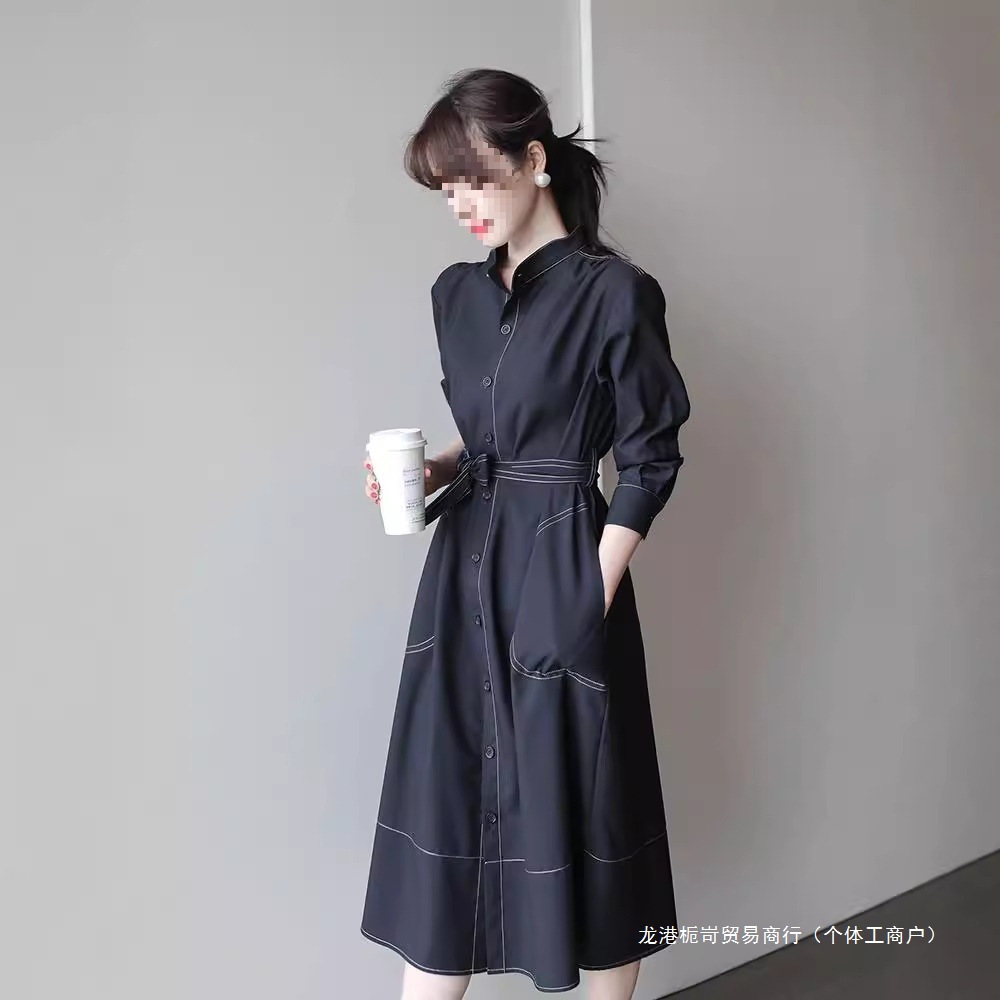 跨境早秋新款气质收腰女装冷淡风法式长袖衬衫连衣裙长裙女春秋00