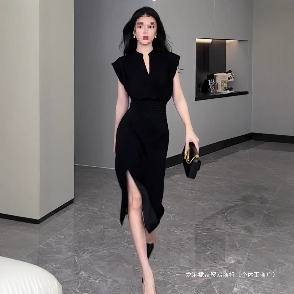 跨境FL231416夏季新款黑色连衣裙女阔太太裙子御姐轻熟风配高跟鞋
