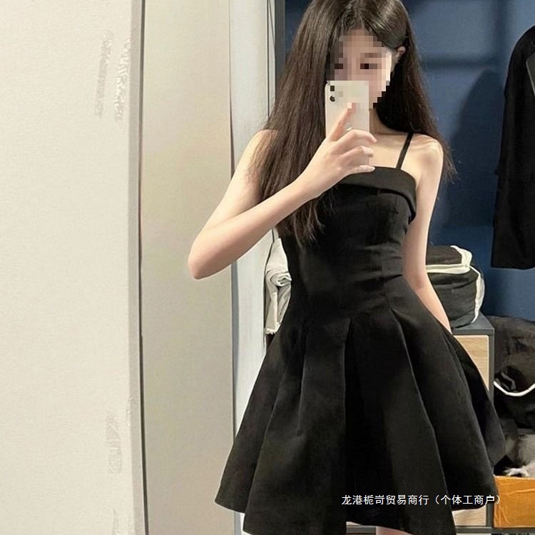 跨境2025新款法式赫本黑色吊带连衣裙气质收腰显瘦短裙小黑裙